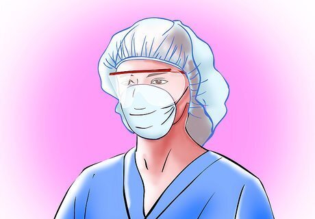 Wear appropriate personal protective equipment (PPE). Check your facility's stock for items such as non-latex gloves, disposable gowns, goggles, face shields, masks, and shoe covers. Hospital personnel should always clean their hands according to protocol before donning PPE. Personnel should put on the hospital gown first, followed by a face mask, goggles, and lastly, gloves. Choose your PPE according to the procedure you'll be performing. For noninvasive patient care (e.g. vital signs measurements), gloves are usually sufficient. In contrast, intubating a patient for mechanical ventilation requires a full set of gloves, gowns, mask, and face shield to minimize body fluid exposure.