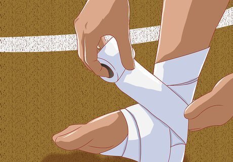 Use tape or compression bandages. In addition to ice, both compression bandages and tape can help prevent swelling and aid your body in the process of recovery. You may even want to consider doing a combination of both ice and compression bandages. You can use a simple ACE bandage from your local pharmacy to wrap your injured area tightly. It should be snug, but not cutting off blood supply. You may also want to tape the area. It's thought that since the tape pulls at your skin, it attracts more blood flow to that area which can help speed healing. Compression is particularly useful for when you just start back with running. You may want to consider wearing compression socks or tights until you're 100% recovered.