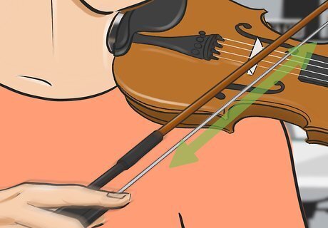 Put more pressure to the bow while you play. Use your index finger to apply pressure to your bow during your strokes. As you apply put pressure on the bow, your violin will feel full and clear. When you’re near the end of your stroke, reduce the amount of pressure to lighten your violin’s sound.