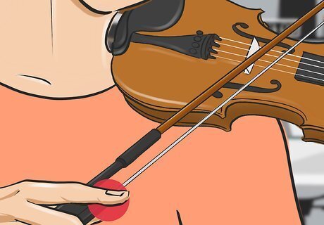 Maintain an even and balanced grip on your bow. Keep the arm and hand you hold your bow with relaxed so you aren’t tense while you play. Keep your pinky on top of the bow and apply even pressure between your fingers to keep the bow balanced. As you improve your grip, your violin will sound fuller. Don’t grip the bow too tightly or else your violin may sound scratchy.