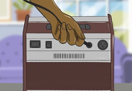 Plug the pickup into an amplifier to increase the volume. Look for an amplifier that’s made for violins or acoustic instruments to use with your violin. Run an auxiliary cable from the amplifier and plug it into the microphone. Play your violin while the amp is on to increase your instrument’s volume and make it stand out. Playing with an amp will not improve the tone of your instrument. Practice good bowing techniques to get the fullest sound. Try adjusting any knobs on your amp to see how it changes your violin. For example, if you increase the reverb, your violin will sound like it’s echoing in a large room.