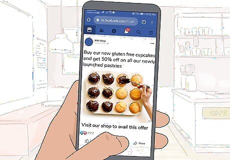 Do this to reach your customers directly. Start an email newsletter that you release each month. Include features on your latest products and the latest goings-on at your company that would appeal to your customers. You can also try promotional emails to specifically highlight new products. Make the subject line refer to the product so that your customers are more likely to notice it, and give more information on the product and how to buy it in the body of the email. Expand your email list by announcing your newsletter on social media channels and linking to a signup page on your website. Offer a special discount code or another incentive for customers to signup to your email list