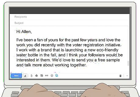 Ask popular influencers to review your product online. Influencers are well known members of an industry who people trust, such as hairstylists who have a strong social media presence and review hair products. Identify influencers in your industry who might be able to spread the word about your product and make an impact on its reception. Contact 2-3 influencers via email to try out your product and review it. You can offer to give them your product for free in exchange for the review. If they’re an especially popular influencer, they may ask for some kind of monetary compensation on top of it. For example, if you’re developing a fitness app, you might ask a popular fitness guru from Instagram to try the app and review it on their platform.