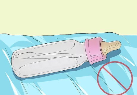 Avoid leaving a bottle in the crib or bed. If your baby is bottle fed, don’t give leave a bottle in the crib when you put the baby down for naps or bedtime. Babies can learn to depend on the bottle to fall asleep and the bottle is a choking hazard. Research has shown that leaving the bottle in the crib with the baby can increase the risk of tooth decay and ear infections.