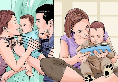 Create a bedtime routine. While this may be difficult to do in the first few months when your baby is sleeping a lot, you should begin to develop a bedtime routine. This will teach your baby to recognize that it's time to start winding down for bed. Keep the routine simple and consistent. You should spend no more than 10 to 15 minutes on the routine. Some ideas you can include in your routine are: Bath time Reading stories Rocking quietly Listening to calming music