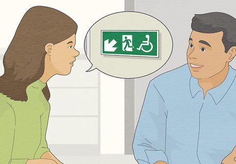 Take time to develop a safety plan. Your plan should be catered to your specific disability. Go over the plan with your caretaker or someone that you trust, and communicate with everyone who lives in your household so that everyone will be on the same page if such an event occurs. Make a plan that involves rendezvous points, contact people and ways to communicate with them, and escape routes that include wheelchair accessible locations, if that is applicable to you.