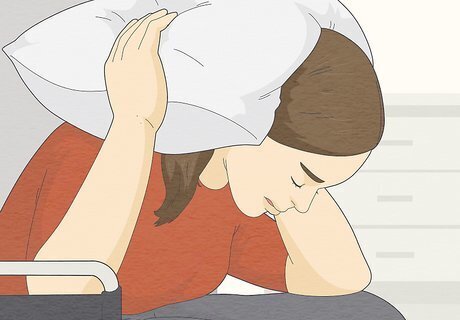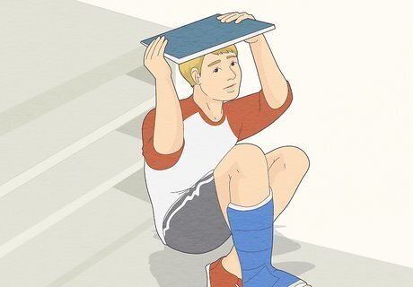 Protect your head and neck from harm. Use one arm to cover your neck and head, in case nearby objects fall on you. If possible, hold a pillow or couch cushion over your neck to protect it from debris.