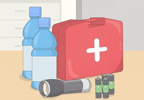 Set up emergency supply kits. Create kits for emergencies that include key items such as water bottles, flashlights, and batteries. A first-aid kit should also be included. Scatter these kits around your place of residence so that you can be prepared for any scenario.