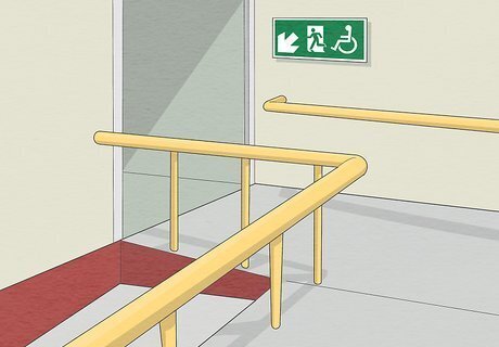 Avoid using elevators. Elevators are unsafe because the power may have gone out during the earthquake, and you could get trapped. Look for accessible ramps if you need them. If there are only stairs or elevators available, simply stay in place and wait for help.