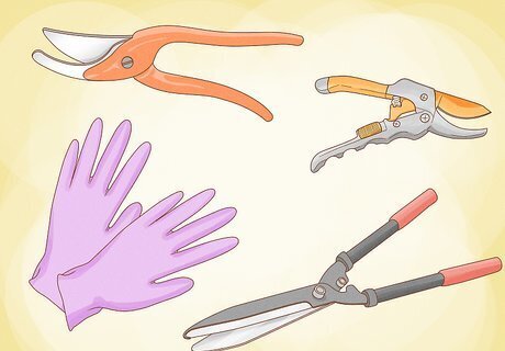 Cut away diseased parts of the plant as soon as you notice diseased growth. If you notice that a section of your plant has become diseased, cut away that section of the rose to stop the spread of the disease. After you have removed the diseased growth, burn it or put it in bags in the trash. Do not put diseased foliage in the compost container, as ding this may still allow the disease to spread. Once you have cut away all of the diseased parts of the plant, wash your pruning shears with hot water and soap. This will keep your pruners from spreading the disease to other plants the next time you use them.