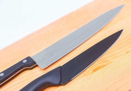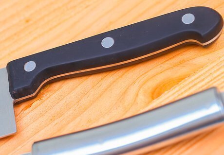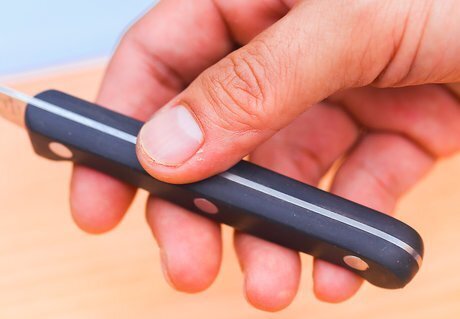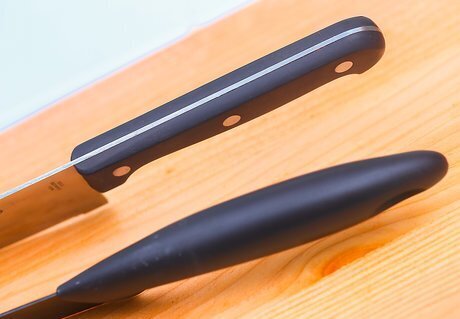 Consider the type of handle you want. Knives come with wooden, plastic, composite, and stainless steel handles. Wooden handles can be shaped into a comfortable handle, but they do require lots of maintenance to prevent cracking and bacterial contamination. Plastic or composite handles require little maintenance and can be contoured to provide extra grip, but they too can crack over time. Stainless steel handles are the most durable, but can become slippery while you're using them. These knives are typically heavier.