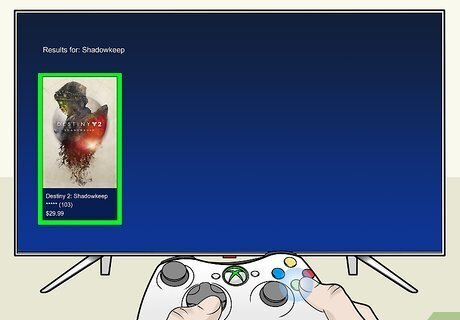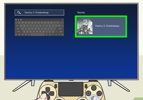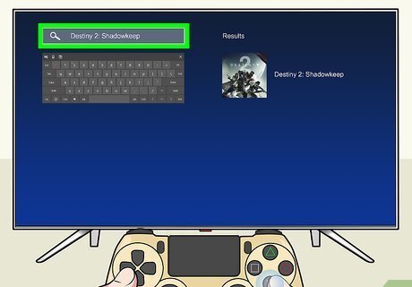 Search "Destiny 2: Shadowkeep." Using the on-screen keyboard, type the search by navigating to the letter you want and press ×. A list of search results will appear after you enter a letter. You can navigate to one of these and press × or you can type the entire game's name.