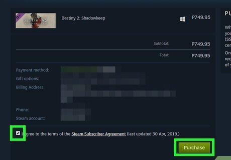 Review your payment, check the box next to "I agree…" and click Purchase. You'll receive an email confirmation of the purchase. Follow the on-screen instructions to download Shadowkeep.