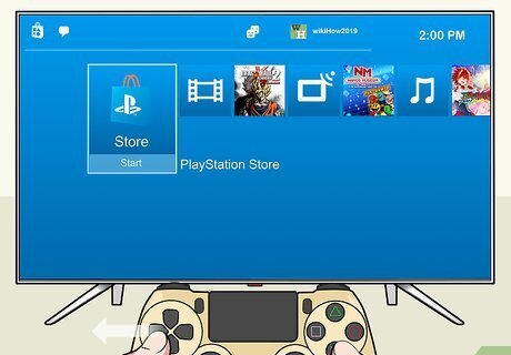 Open the PlayStation Store. You'll find this if you scroll all the way to the left. You can also pull this up from the bottom of your screen by pressing the PS button on your PlayStation Controller (the button between the two thumbsticks). You'll see the PlayStation Store icon all the way to the left. Log in if prompted.