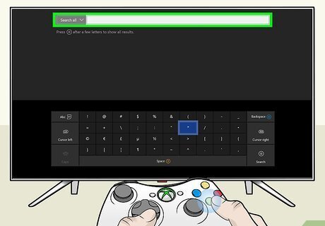 Navigate to the search field and press A. You'll need to navigate down to find the search bar, which is usually next to tiles for Deals, Memberships, and Use a code.
