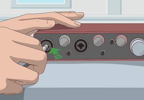 Connect your audio interface and guitar. If you are using a USB audio interface, connect it to an open USB port on your computer. Plug your guitar directly into your audio interface. Make sure you plug into the guitar or instrument input on your audio interface. If your audio interface has adjustable gain, turn the gain all the way down, or nearly all the way down.