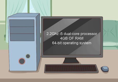 Get a computer with decent power. Audio recording can take a lot of memory and processing power. If you only plan on recording a couple of tracks, you can probably get by with a less powerful computer. However, if you are planning on recording an entire song with multiple guitar parts, bass, drums, vocal tracks, and keyboard tracks, you'll need a more powerful computer. The recommended minimum specs for audio recording are as follows: 2.2Ghz i5 dual-core processor (i7 quad-core recommended). 4GB of RAM (8GB or more recommended). 64-bit operating system