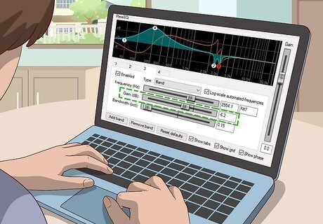 Turn up the gain. Most virtual amp plug-ins have an interface that resembles a real-life guitar amp. Click the switches to flip them, or click and drag the knobs to adjust them. You should now hear distortion on your guitar, though you'll probably notice it sounds a bit fuzzy. We still have a few more steps to complete to clean up the sound. Don't worry about setting the equalizer settings (Low, Mid, High) just yet. Set them all to 5.