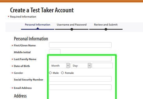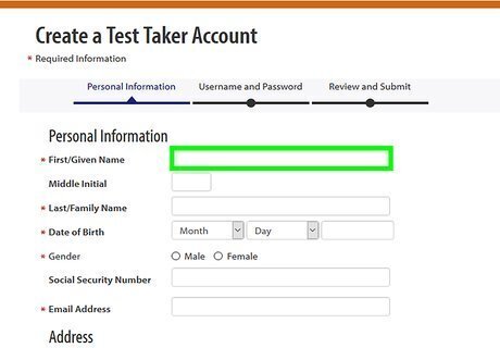 Enter your name as appears on your state ID or passport. You will need to present an official government ID at the testing site when you go to take the GRE. The name on this ID must match your online account perfectly. If the names don’t match, you will not be allowed to take the exam. Double-check your passport, state ID, or driver’s license before entering your name to ensure that you enter the name exactly as it appears on the ID.Tip: Exclude any accents, but enter the capital letters correctly. For example, if your name is Chloé McCree, enter “Chloe McCree” for your name. You can pull up a list of acceptable IDs at https://www.ets.org/gre/revised_general/register/id/. You can use any government-issued ID so long as it is valid, bears your full name, has your signature, and includes a photograph of your face. You cannot use a photocopy of an ID to take the GRE.