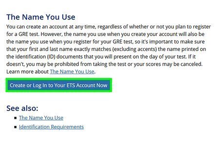 Click the link on their website to create a new account. Scroll to the bottom of the page and click the blue button labeled “Create or Log In to Your ETS Account Now.” You will use your ETS account to register for the test, check your scores, apply for testing accommodations, and send your scores to the schools that you want to apply to.