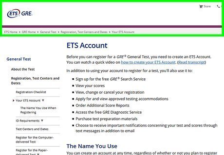 Visit ETS online to sign up for an account. ETS, which stands for Education Testing Service, is the only company that administers the GRE. You need an ETS account to sign up for the GRE and schedule your exam. Visit ETS online to sign up for a new account. To visit ETS and sign up for an account, visit https://www.ets.org/gre/revised_general/register/your_ets_account?WT.ac=gre_34269_revised_register_mygreaccount. It is free to create an ETS account, but you do have to pay $205 to take the test.