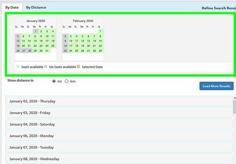 Sort your search based on the date that you’re looking for. After you’ve entered a location and test, a calendar depicting 2 months will pop up on your screen. You can click the blue arrow in either direction to select any set of 2 months to filter your search. In other words, if you’re signing up for a test but want to take it 5 months from now, click the blue arrow twice to view availability for 5-6 months in the future.