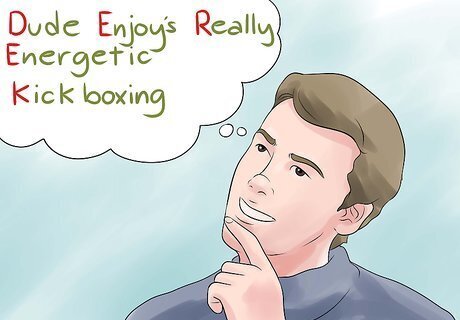 Link information. When you learn something new, find a way to tie it into what you already know. Make it relevant to your life and your knowledge base. Try using mnemonics to create more mental connections around a given bit of information. Come up with a handy acronym, or try to remember the new thing as a subset of something you already know.#*If you are trying to remember how to find a physical location, try to tie it into your existing mental map. Memorize each twist and turn that led you to the place. Link the spot in your mind to another place that you know.