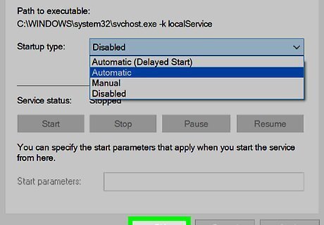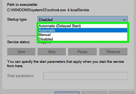 Click the "Startup type" drop-down box. This box is to the right of the "Startup type" heading in the middle of the window. A drop-down menu will appear.