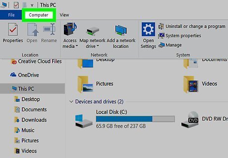 Click the Computer tab. This option is in the upper-left side of the window. A toolbar will appear below the tab.