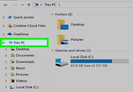 Click This PC. It's a computer-shaped folder on the left side of the File Explorer window.