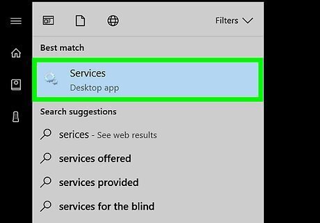 Click Services. It's a gear-shaped app at the top of the Start window. The Services window will open. If this option doesn't appear, type services.msc into Start to force it to appear.