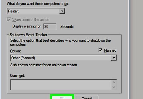 Click OK. It's at the bottom of the window. This will prompt the other computer to restart as soon as the selected time limit expires.