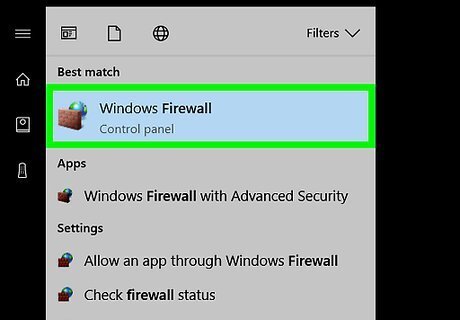Click Windows Firewall. It's an image of a brick wall and a globe. You'll find it at the top of the Start window.
