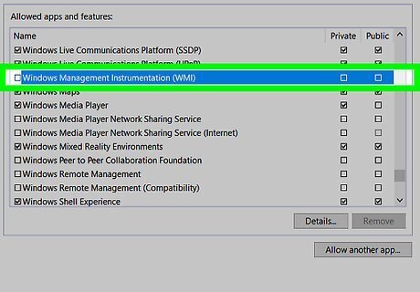Check the "Windows Management Instrumentation" box. It's to the left of this option. If the computers you're using are on a public network, you'll also need to check the "Public" box on the far-right side of the page.