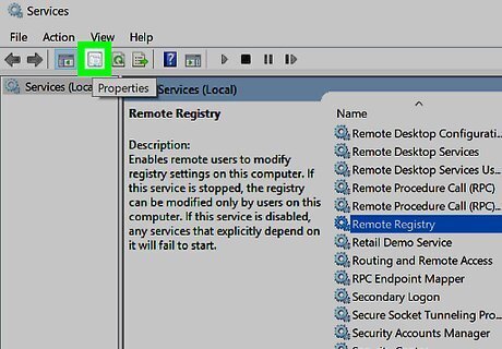 Scroll down and click Remote Registry. It's in the "R" section of the main window. Clicking Remote Registry selects it.