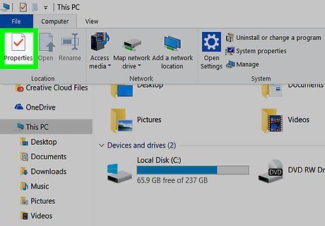 Click Properties. It's a red checkmark on a white box in the far-left side of the toolbar. This will open the Properties page for this computer.
