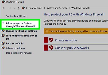 Click Allow an app or feature through Windows Firewall. This link is in the top-left corner of the window. Doing so opens a list of all programs and services on the computer.