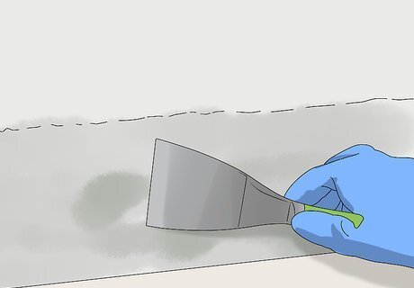 Scrape any remaining caulk off the wall. Take your taping knife and gently chip away at the caulk. Come at it from the side rather than from the top or bottom to avoid accidentally chipping the drywall. You can leave a dustpan underneath you while you work to catch the falling chippings.
