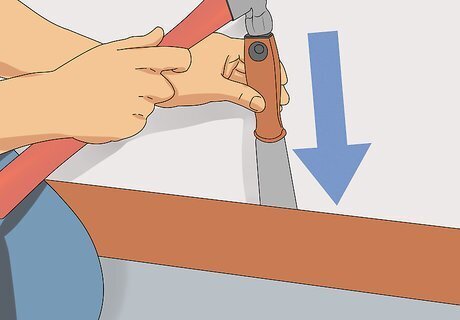 Find the nails in the space and place your taping knife above them. Take the taping knife out of the grove for a moment and check for any nails. If you don't find any, move along the board a little and repeat step 3. You're finding the nail so you have a place to position your crowbar and make pulling off the baseboard easier. If your baseboards are glued on, you can skip this step and move onto the next. If you have a trim puller, you can use that instead of the taping knife.