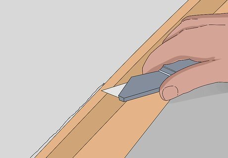 Cut through the caulk binding the board to the wall. Take your utility knife and position it at the top of the edge of the baseboard. This is where the caulk is located. Slowly but firmly press the blade into the caulk and run it along the end of the baseboard. You want to break this adhesive so that, when you're prying, it doesn't pull your drywall away with the board. Return to your starting position once you have finished.