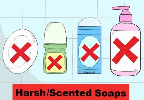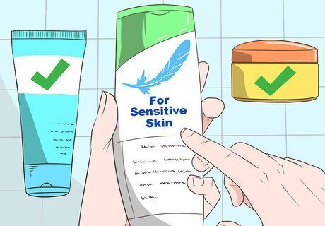 Use products intended for sensitive skin. If you have eczema, you should avoid using harsh soaps that are scented or include deodorant. These products can strip your skin of the natural oils that help protect the skin and keep it hydrated. There are some skincare products made specifically to soothe skin and reduce redness.