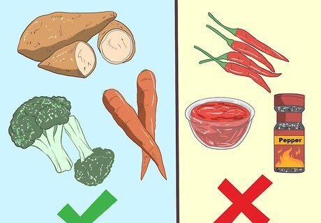 Watch what you eat. Certain foods are naturally high in antioxidants that help hydrate the skin and protect it. Foods like sweet potatoes, broccoli, and carrots have high levels of these kinds of antioxidants. Avoid foods that are spicy; these can trigger symptoms of redness in the skin.