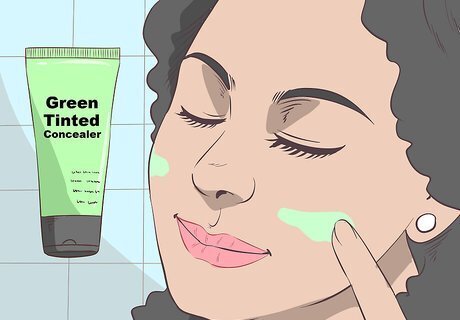 Use a green tinted concealer. If regular concealer doesn’t work, try using a concealer with a mint tint to cover the unsightly red color. As weird as it sounds, the green color will help counterbalance the redness underneath for a more natural skin tone.