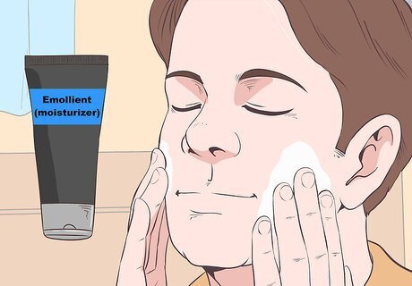 Moisturize your skin. Eczema usually occurs in people with generally dry skin. It’s not definitively known what causes eczema, but experts usually recommend that the first step in treating eczema is to keep your skin moisturized. Use an emollient (moisturizer) like lotion, cream, or ointment that uses oil to keep your skin hydrated and supple.