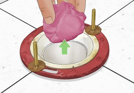 Plug the hole. Using an old rag balled up, plug the hole, as you will want to prevent gases from rising into your home and keep tools from disappearing into the floor! Just remember to remove this rag when you put the new toilet in place.