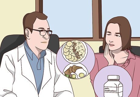 Follow your dentist's recovery plan. You'll probably experience some bruising, swelling, or discomfort after surgery. Ask your dentist if you should take pain medication and talk about what foods are safe for you to eat as your mouth recovers. For example, you might need to stick to soft foods until your stitches dissolve or are removed. Once the final surgery is complete, you'll need to follow your dentist's recovery recommendations. Get regular dental checkups at least every 6 months or as recommended.