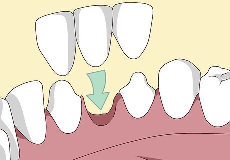 Undergo a procedure to grind surrounding teeth and get an impression. Once you're ready to get the fixed bridge installed, your dentist will grind the teeth next to the gap. Then, they'll take an impression of the teeth so they can make the bridge.Tip: It will take a little time for the dental lab to create your custom bridge with the replacement tooth. The dentist will give you a temporary bridge to wear while you're waiting. This bridge will protect the surrounding teeth. It's important to shape the surrounding teeth in order to fit the bridge with the replacement tooth onto them. These surrounding teeth act as anchors for securing the replacement tooth.