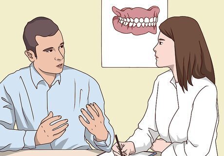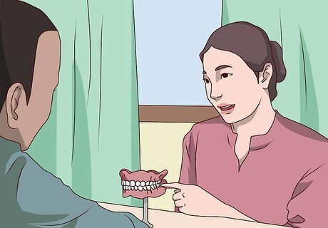Get an impression made of your teeth. In order to make a replacement tooth that properly fits in your mouth, the dentist needs an exact model of the teeth in your mouth. They'll spread putty on a small tray and push it against your upper teeth or lower teeth. Then, they'll remove the tray and use the impression to make your dentures. Getting an impression is a little awkward, but it's not painful. It usually takes 1 to 2 minutes for the putty to set before the dentist removes the tray from your mouth.