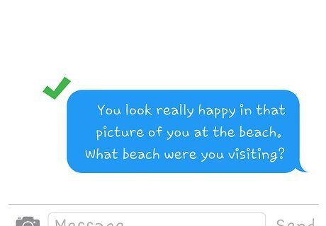 Inquire about one of his photos to learn more details about him. This will show that you took time to look through his pictures and are interested in getting some details. Don’t be afraid to give compliments. You could comment, “Hey, I love the photo of you at the waterfall. Where was that taken?” Point out, “You look really happy in that picture of you at the beach. What beach were you visiting?”