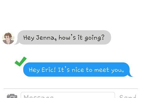 Send a brief response if he sends a short message. If you are shy, but want to show interest, respond with something simple just to keep the conversation alive. You can add a hand-waving emoji if you want it to seem more friendly. This response will at least get you on his radar. Respond with something like, “Hey Eric! It’s nice to meet you.” At least he knows you got his message and it will be up to him to start moving the conversation forward.